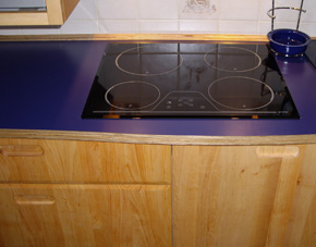 Die hier verwendeten Vollholzfronten aus europäischer Erle 3-Schicht-Platte wurden in ihrem Material durch die eingefrästen Griffe betont und durch die Endbehandlung mit Hartöl in ihrer Natürlichkeit belassen.